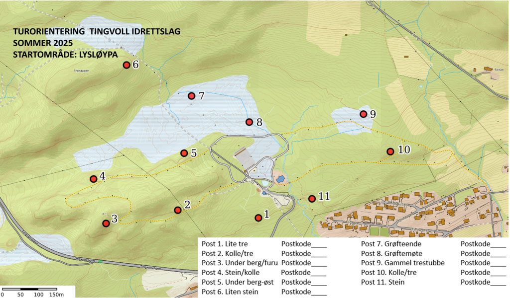Vi har nå lagt ut 11 turorienteringsposter i friluftsparken. Disse ligger rundt om i traseen til lysløypa.